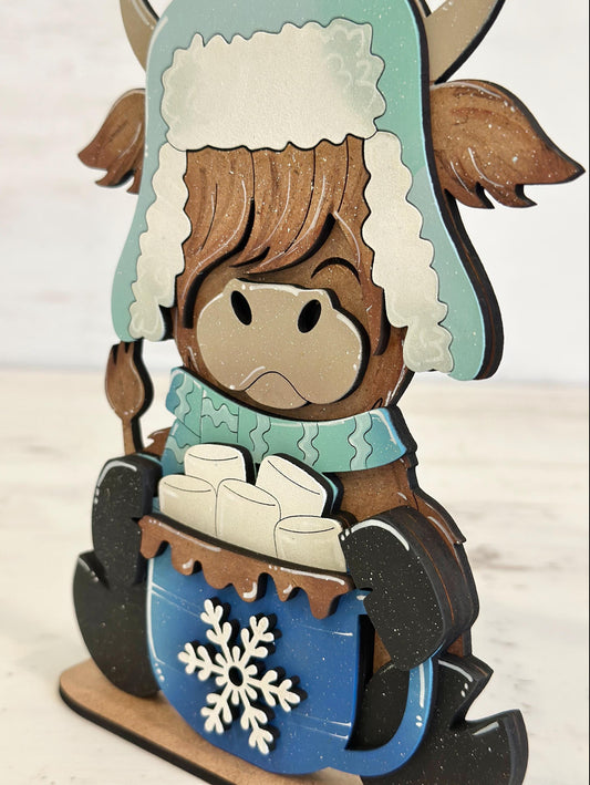 Winter Highland cow with Hot chocolate mug paint Kit